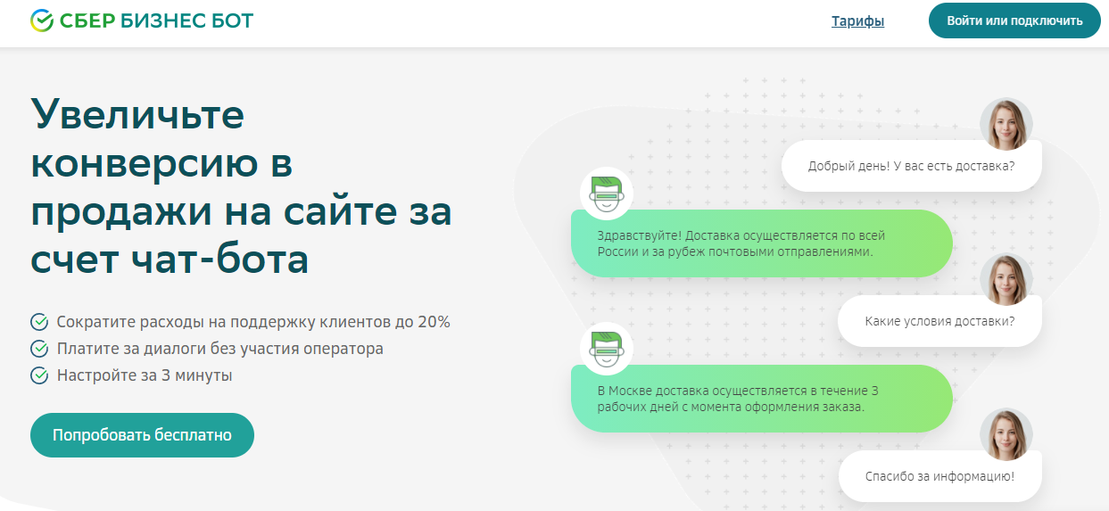 На платформе «Сбер Бизнесбот» обещают, что настроить бота можно буквально за три минуты, при этом он позволит сократить расходы на поддержку клиента на 20%.