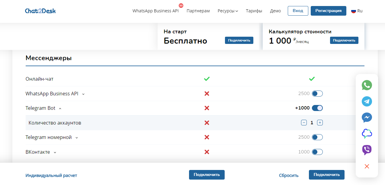 Для примера, стоимость создания чат-бота для Telegram и дальнейшее пользование им начинается от 1000 рублей/месяц.
