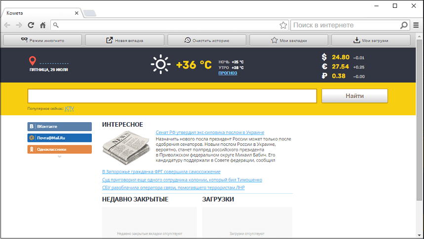 Скачать Kometa Browser для просмотра новостей