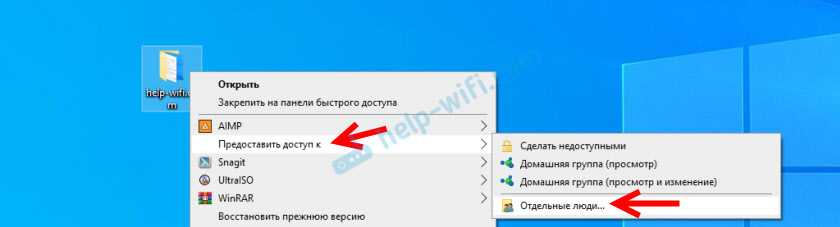 Просто нажимаем правой кнопкой мыши на любую папку или файл, наводим курсор на меню «Предоставить доступ к» и выбираем «Отдельные люди».