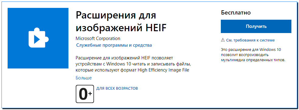 Для этого откройте приложение Windows Store, найдите HEIF Image Extensions , а затем выберите расширение с тем же именем. Если у вас возникли проблемы с поиском кодека, используйте кнопку «Загрузить» ниже.
