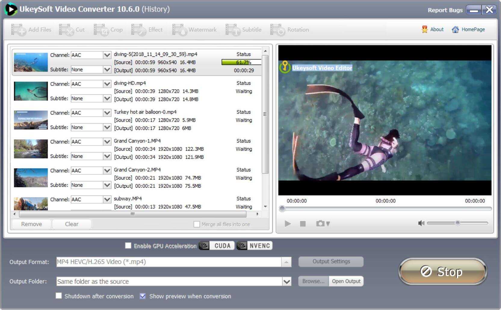 Мощный, но простой в обращении UkeySoft Video Converter/UkeySoft Video Converter для Mac интегрирован с HEVC Encoder и HEVC Decoder, который может конвертировать HEVC / H.265 в другие видео и наоборот, Конвертация видео происходит на высокой скорости и сохраняет высокое качество. Кроме того, эта программа предоставляет удобные функции редактирования видео, включая обрезку, обрезку, специальные эффекты, водяной знак, субтитры и т. Д. Смотрите другие ключевые функции программного обеспечения UkeySoft Video Converter: