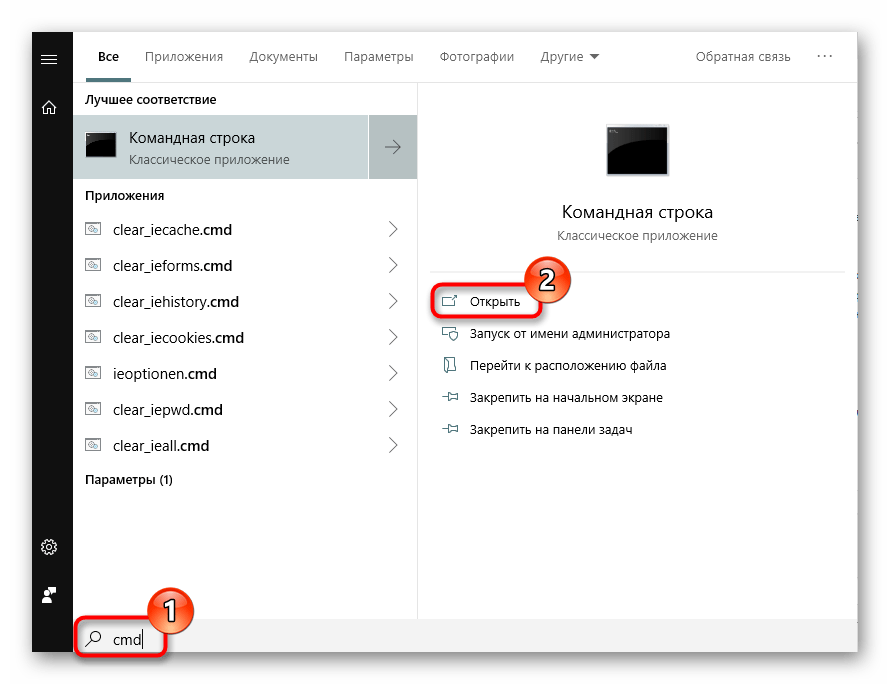 - Откройте Командную строку любым удобным способом, например, через «Пуск», вписав в поиск ее название.