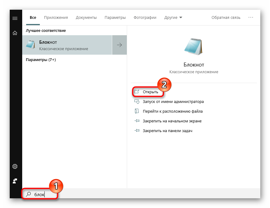 - Через «Пуск» запустите встроенный в Windows «Блокнот».