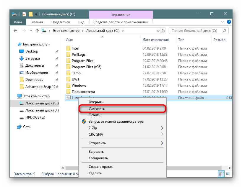 Кликните по файлу ПКМ и выберите «Изменить».