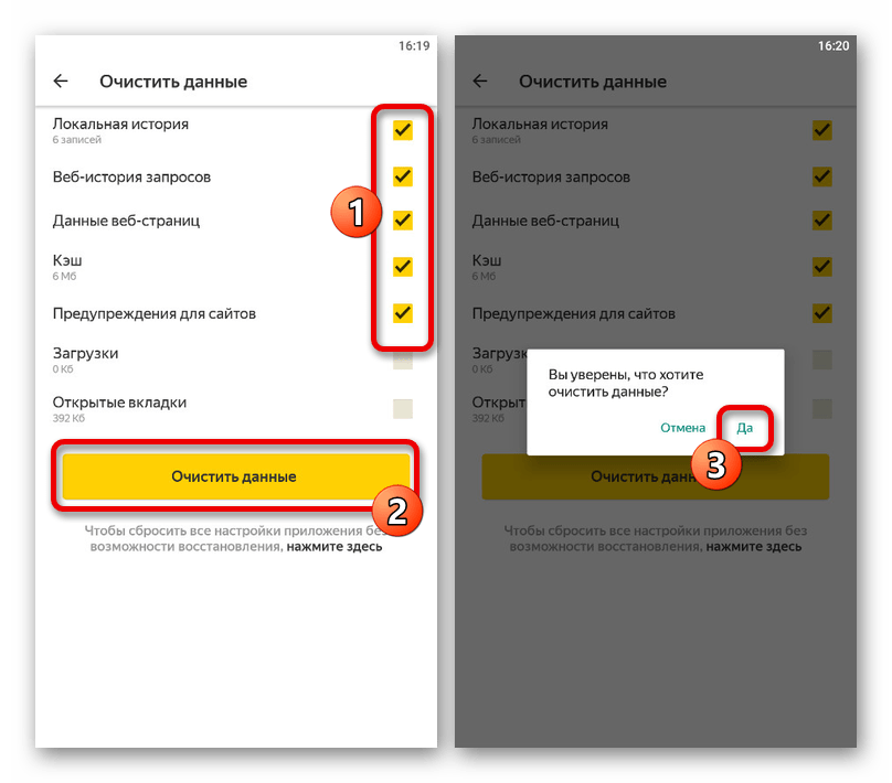 Воспользуйтесь кнопкой «Очистить данные» в нижней части экрана и подтвердите действие через всплывающее окно. По завершении процедуры браузер будет очищен от мусора, и вы сможете проверить доступность ранее заблокированного веб-ресурса.