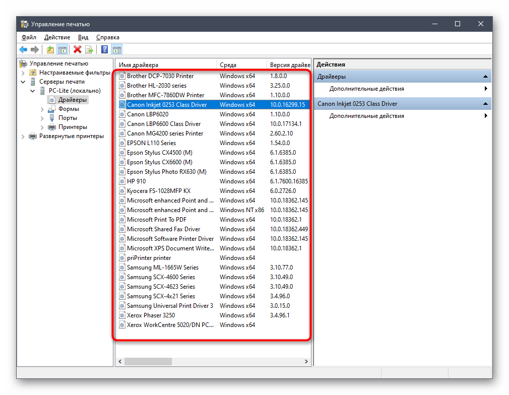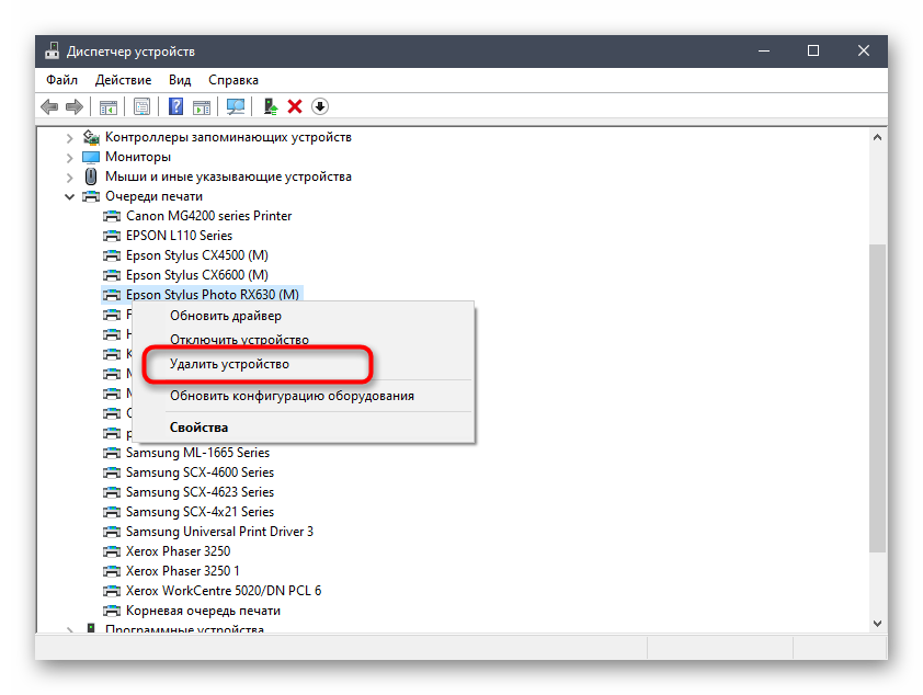 Точно таким же образом очищаются любые драйверы, связанные с печатающим оборудованием и сканерами, которые подключались к компьютеру с дальнейшей установкой соответствующего программного обеспечения.