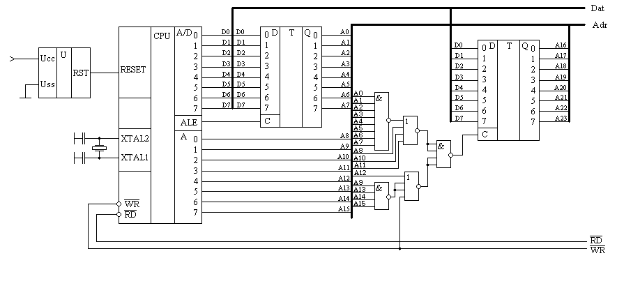Внешние выводы параллельного порта при этом используются в качестве старших битов адресной шины.
