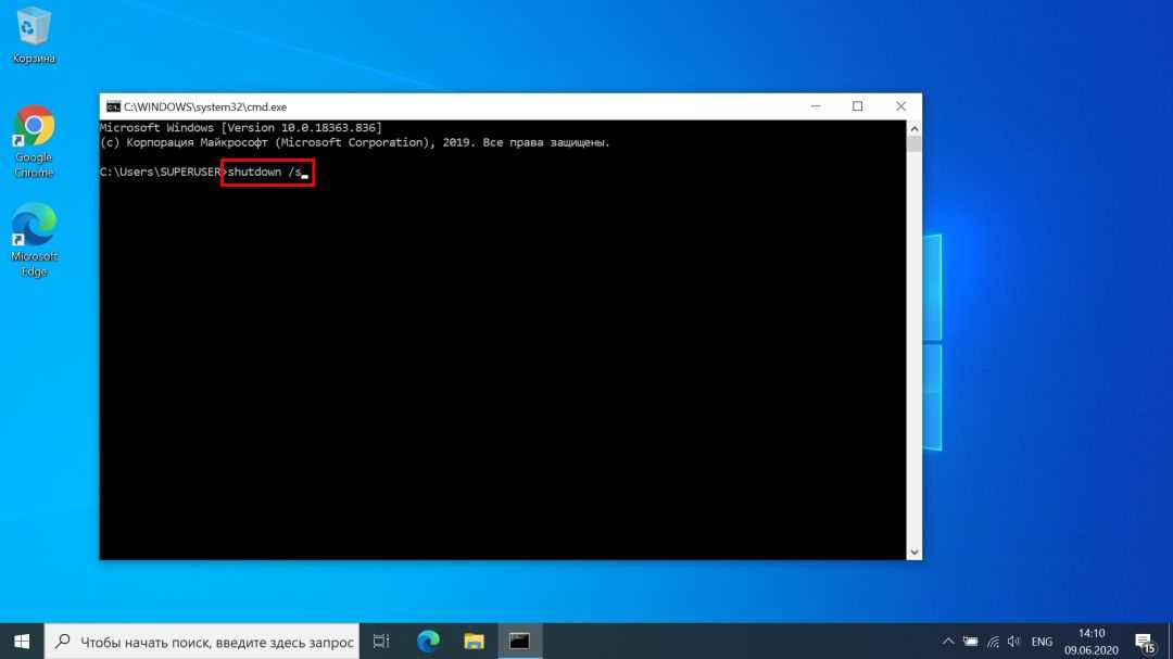 Нажмите Enter, чтобы запустить команду и дождитесь подтверждения от системы – на экране появится окошко с уведомлением во сколько точно отключится компьютер.