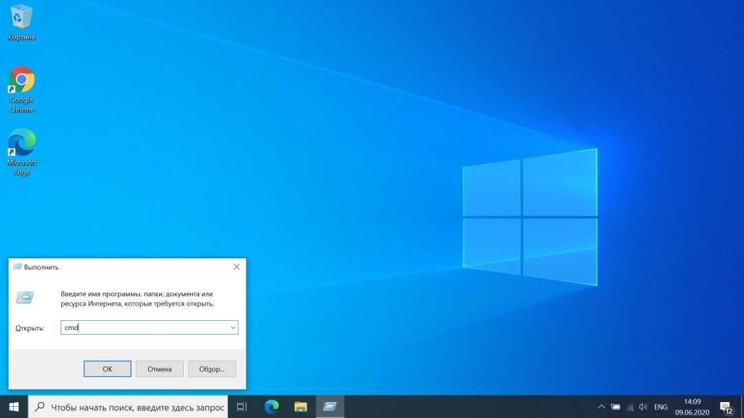 А еще можно вызвать командную строку через окно «выполнить», зажав на клавиатуре сочетание кнопок «Win+R» и вписав одну из команд — «cmd» или «powershell»: