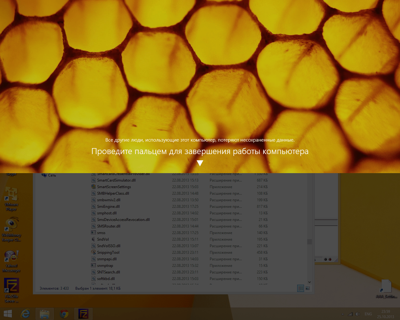 Если перетащить мышью панель с картинкой экрана блокировки вниз, компьютер выключится.
