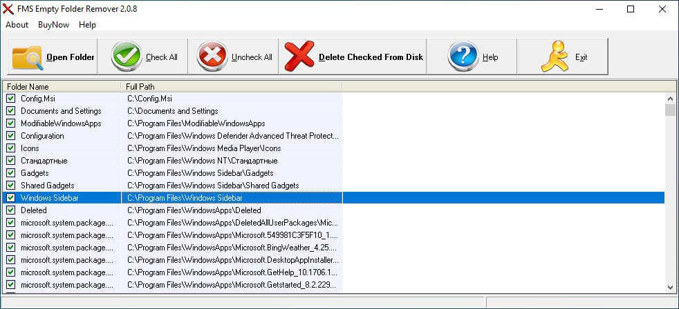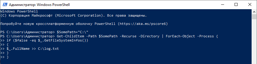 В результате в корне системного раздела у вас будет создан файл log.txt со списком путей к пустым папкам.