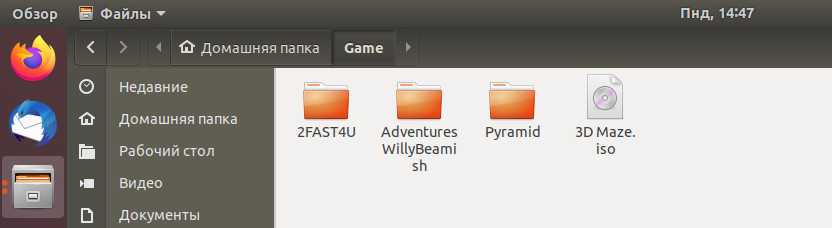 В нашем примере папка с игрой была помещена в каталог /home/kompik/Game.