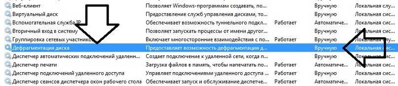 Найдите службу дефрагментации и убедитесь, что она не отключена. В противном случае установите её в положение Вручную.