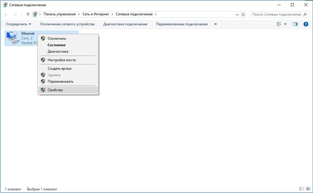- Откройте свойства подключения через соединение, через которое вы подключаетесь (правая кнопка мышки).