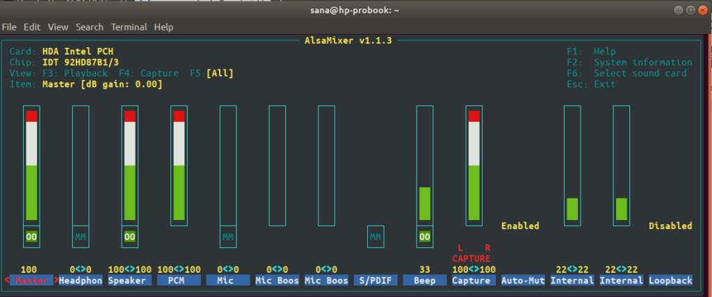 Самая важная часть использования Alsamixer — это возможность увеличивать и уменьшать громкость определенного устройства.