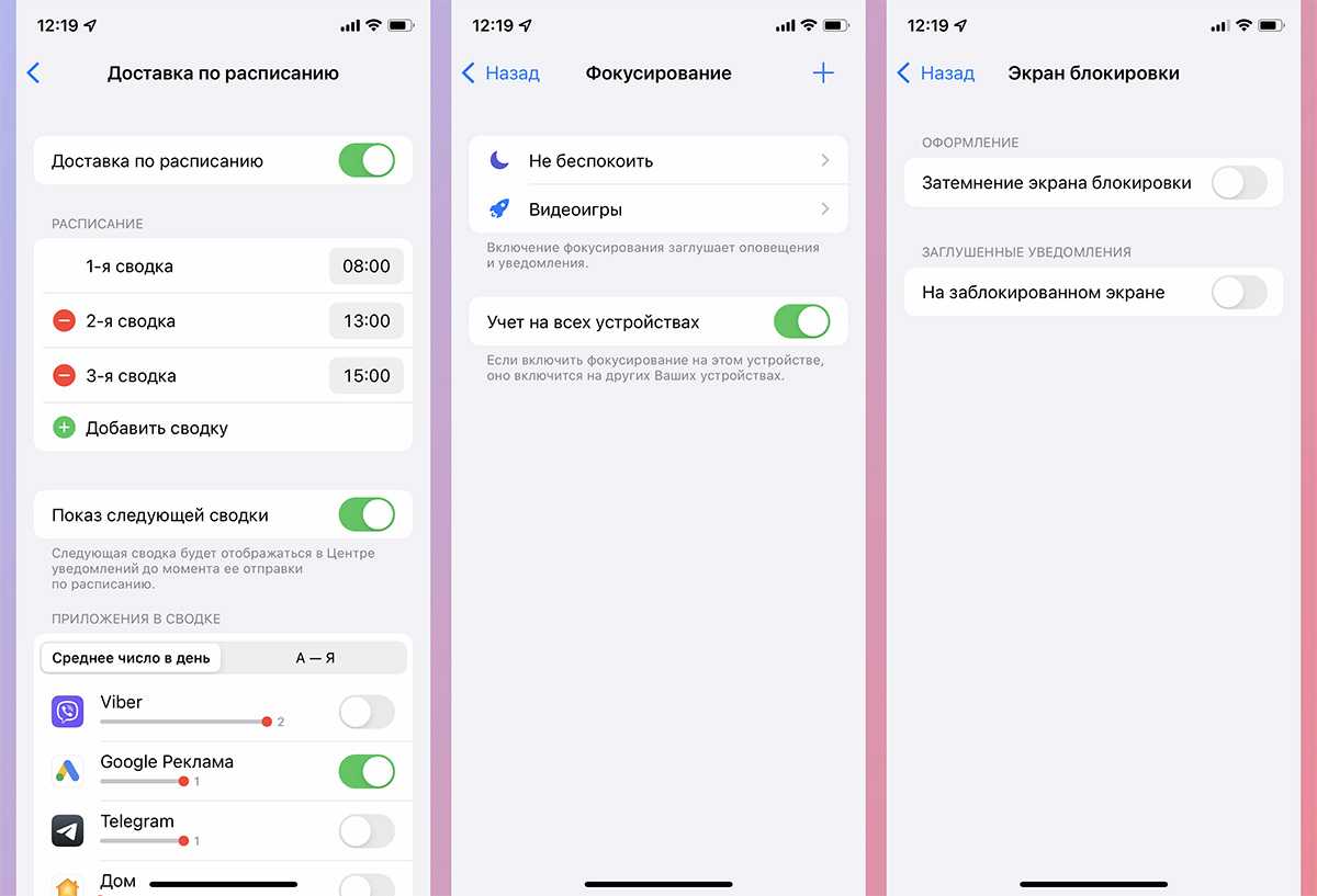 2. Теперь настройте или отключите сводку уведомлений. Фишка позволяет собирать сообщения за определенный период и выдавать пользователю в строго заданное время. Можете указать удобное время отображения сводки (периодов может быть несколько, аж до 12 штук в сутки).