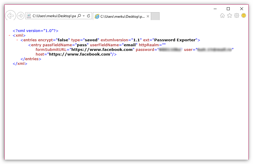 Если вы откроете сохраненный на компьютер HTML-файл, при условии, конечно, что он не был зашифрован, на экране высветится окно с текстовой информацией, в котором будут отображены все логины и пароли, которые были сохранены в браузере.