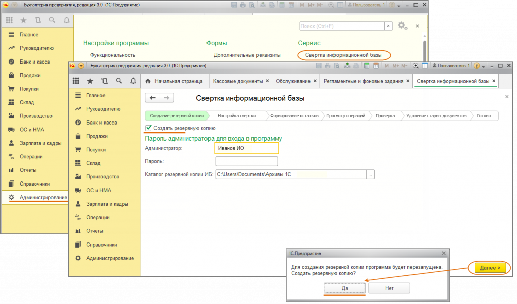 - Уменьшается объем информационной базы, что позволяет программе 1С работать быстрее и меньше тратить времени на выполнение различных обновлений или резервного копирования.