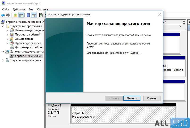 Для того чтобы его запустить нажмите правой кнопкой мыши на «мой компьютер» и выберете пункт управления. В окне «Управление компьютером» перейдите на вкладку «Управление дисками». Скорее всего, на этом этапе система сама спросит вас о создании нового раздела для обнаруженного диска, если нет, найдите тот, что с неразмеченной областью и произведите с ним все необходимые операции.