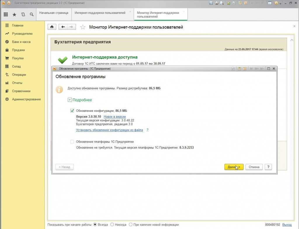Следует учесть, что программа сама по себе не обновляется, поэтому необходимо самому следить за наличием обновлений или обратиться за помощью к нашим профессионалам. Обновление может выполняться для определенной конфигурации программы или самой платформы в целом.