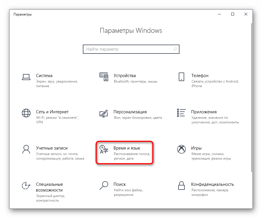 Здесь выберите пункт «Время и язык».