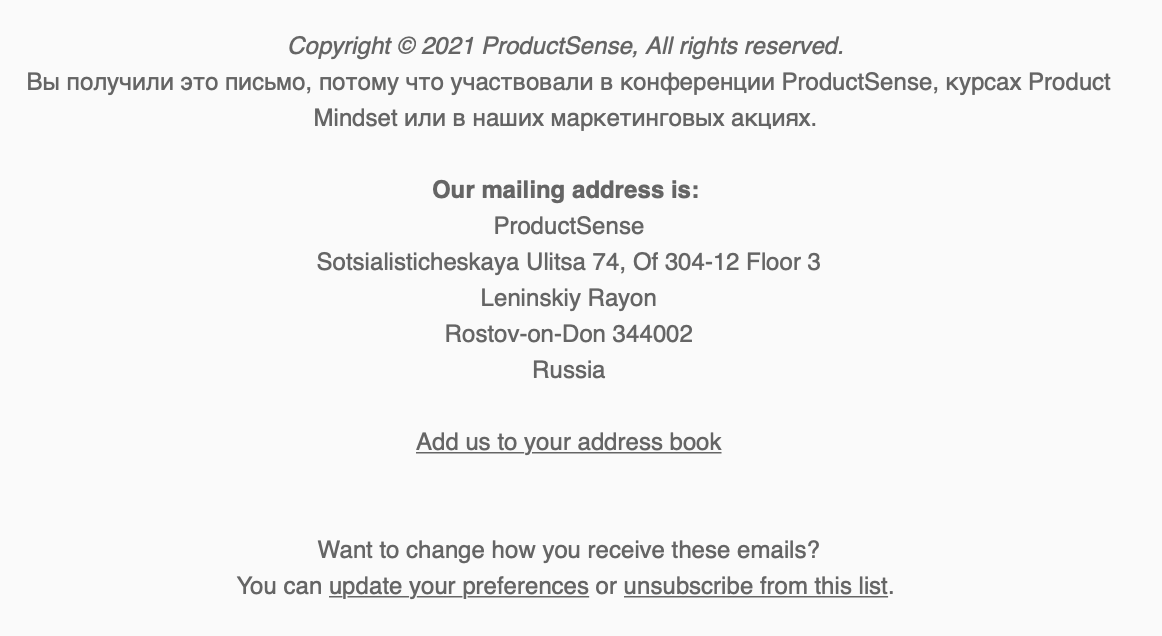Футер в рассылке МИФа даёт чёткое понимание о характере рассылок