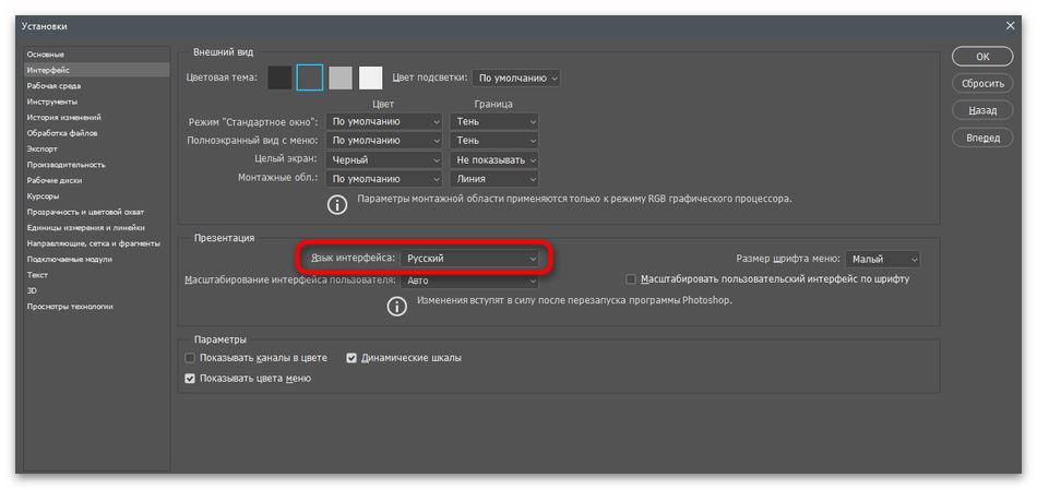 - Как изменить язык интерфейса