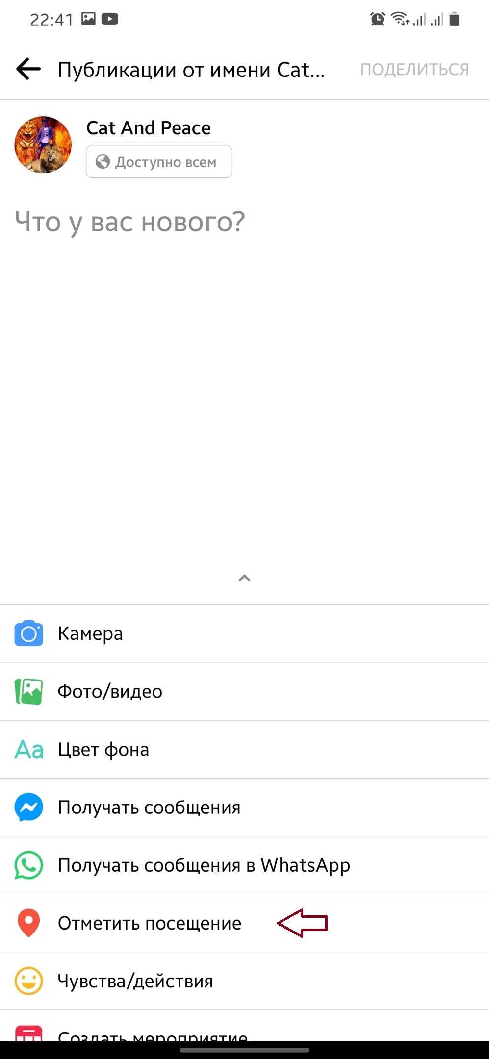 - При ее редактировании ищем пункт «Отметить посещение»;