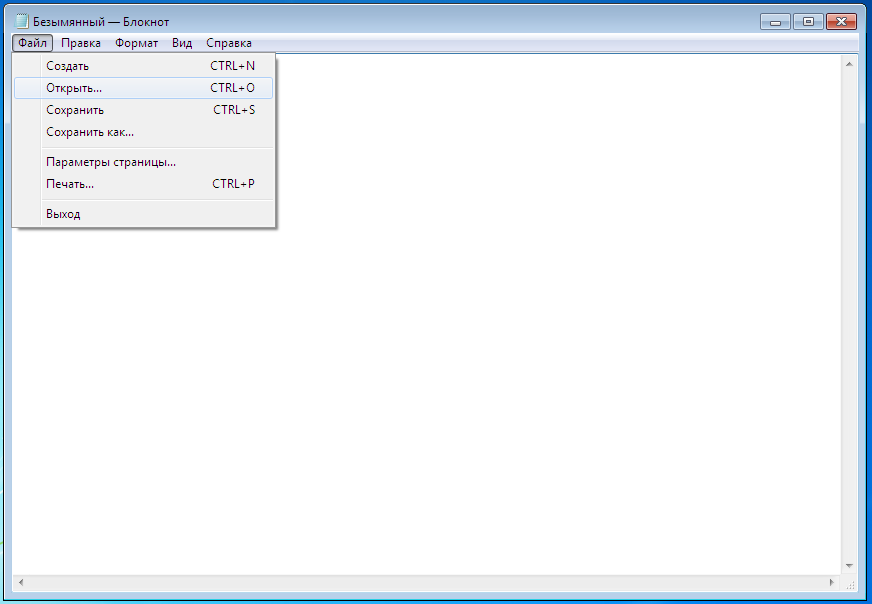 При необходимости введите пароль администратора, после чего откройте подменю Файл -> Открыть: