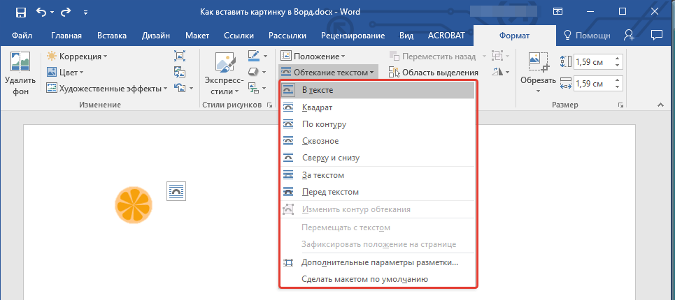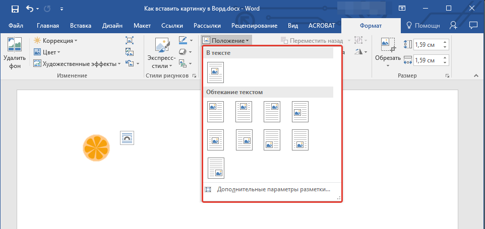 Обтекание текстом: этот инструмент позволяет не только грамотно расположить картинку на листе, но и вписать ее непосредственно в текст.