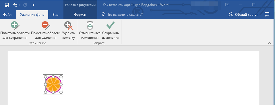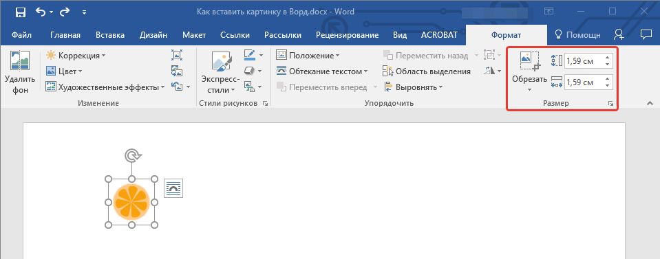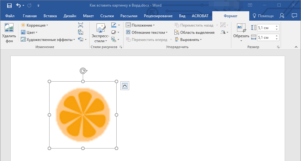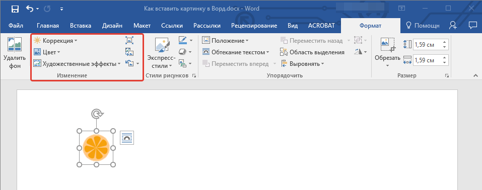 5. Файл будет добавлен в документ, после чего сразу откроется вкладка “Формат”, содержащая в себе инструменты для работы с изображениями.