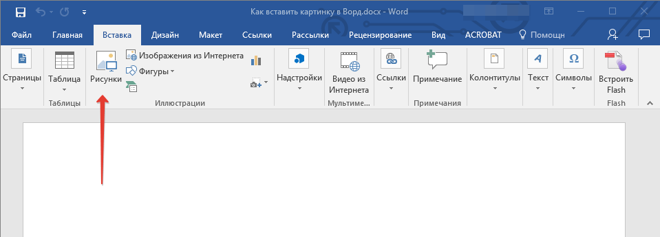 2. Перейдите ко вкладке “Вставка” и нажмите на кнопку “Рисунки”, которая расположена в группе “Иллюстрации”.