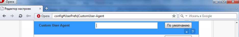- Открыть браузер, в адресную строку ввести opera:config#UserPrefs|CustomUser-Agent.