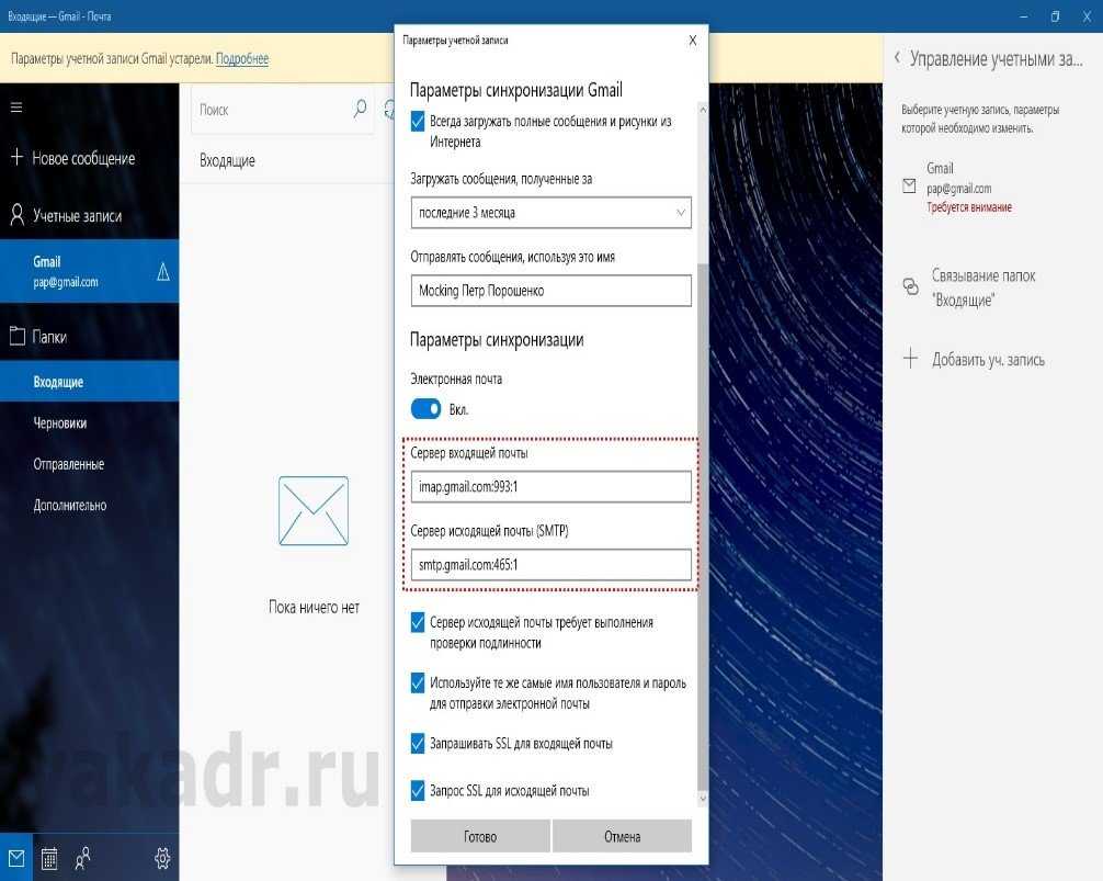 Ну и на этом с настройками, да и с обзором программы Почта можно закончить.
