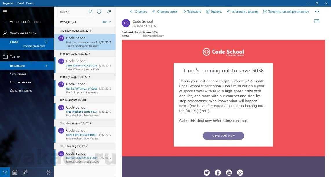 Как видите, настройка почты в виндовс 10 крайне проста. При этом нет необходимости задумываться, где хранится почта в Windows 10. Приложение переносит письма с почтовых серверов к вам на компьютер в папку пользователя. Поэтому, если у вас нет доступа к интернет, увидеть вы сможете только информацию из кеша. Удобно то, что старую почту вы сможете просмотреть даже офф-лайн. На онлайн почтовые сервисы вы вообще не попадете без подключения.