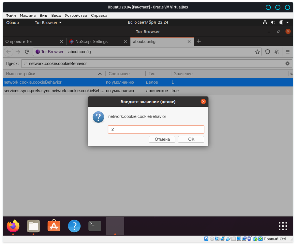 Теперь давайте отключим cookie, для этого в адресной строке набираем “network.cookie.cookieBehavior”, точно так же щелкаем на данном пункте мышкой и в открывшемся окне вписываем цифру “2”: