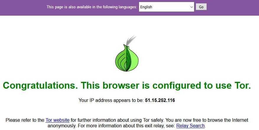 Самый просто способ проверить работу браузера, это перейти на страницу https://check.torproject.org.