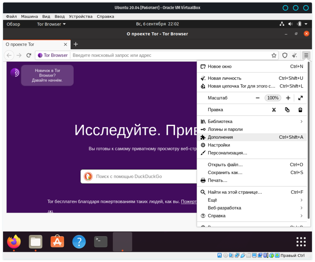 Шаг 1: Нажмите на значок NoScript, он находится немного левее кнопки Tor