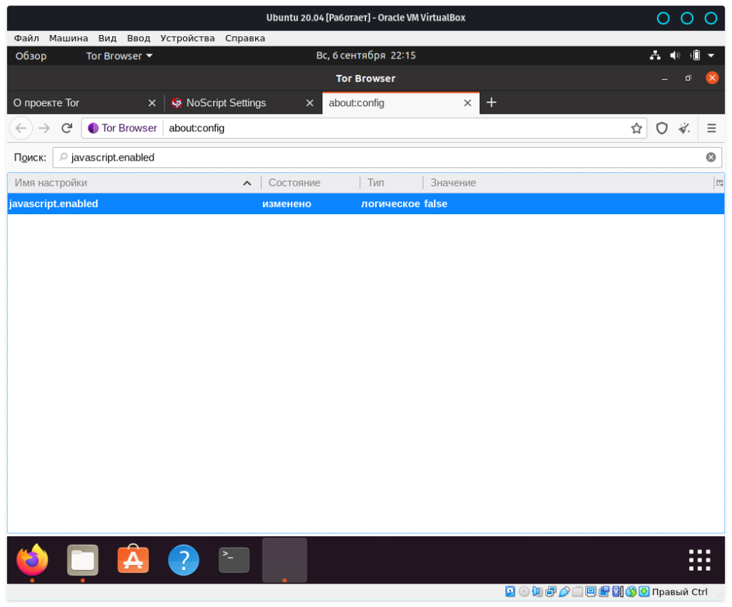 Ищем параметр “javascript.enabled” и отключаем его, щелкнув по нему мышкой, в итоге он должен получить параметр “false”:
