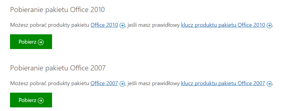 Если у вас есть Office 2007 или 2010, используйте одну из двух последних кнопок «Скачать» на веб-сайте Microsoft. Затем вам будет предложено ввести ключ продукта — если он будет проверен правильно, будет показана ссылка для загрузки установщика Office 2007 или 2007.