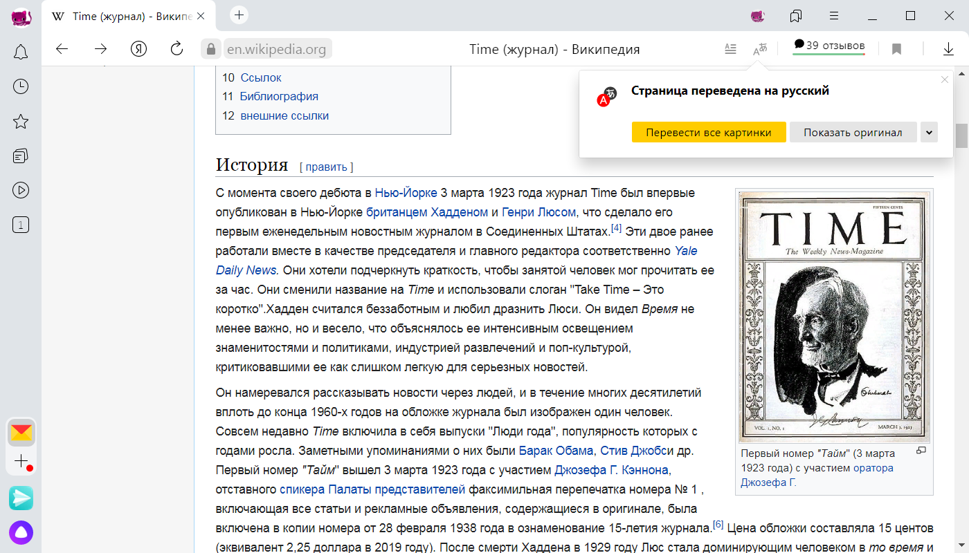 Чтобы перевести текст страницы на язык интерфейса браузера, нажмите в окне Перевести . Чтобы вернуть страницу на языке оригинала, нажмите в окне Показать оригинал .