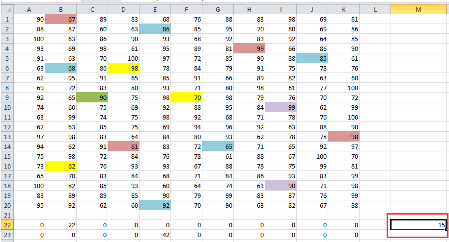 Теперь вы можете видеть, что некоторые ячейки заполнены нулем, а некоторые заполнены числами больше нуля, на самом деле количество ячеек с числами больше нуля — это количество заштрихованных ячеек.
