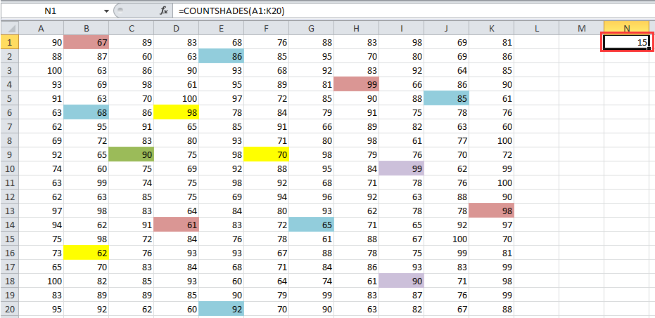 С этим методом подсчитать количество затененных ячеек немного сложно, перейдите к следующему методу, который облегчит эту проблему.