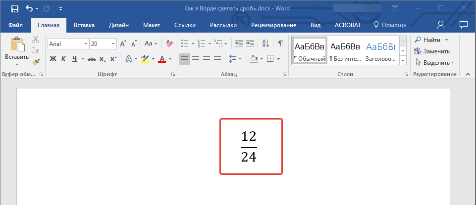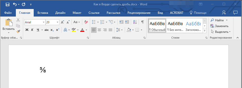 - После того, как вы это проделаете в документе, в том месте, где стоял курсор, появится дробь.