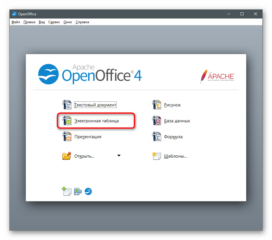- Запустите OpenOffice и выберите модуль для работы «Электронная таблица».