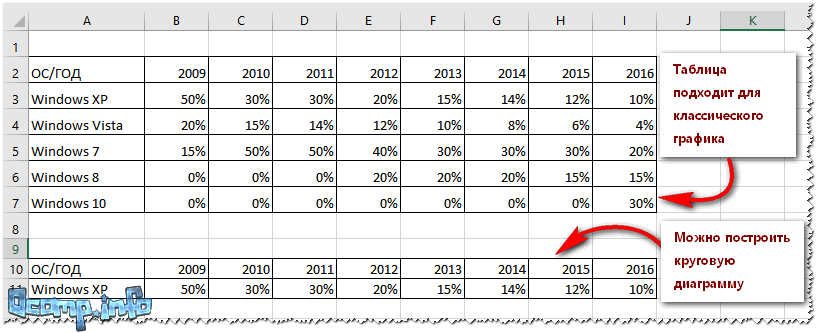 Для построения круговой или точечной диаграммы (которые очень наглядны и полюбились многим пользователям) , необходим определенный тип данных.