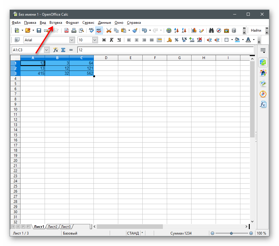 Давайте детальнее разберем, как происходит выполнение данной операции в OpenOffice Calc.