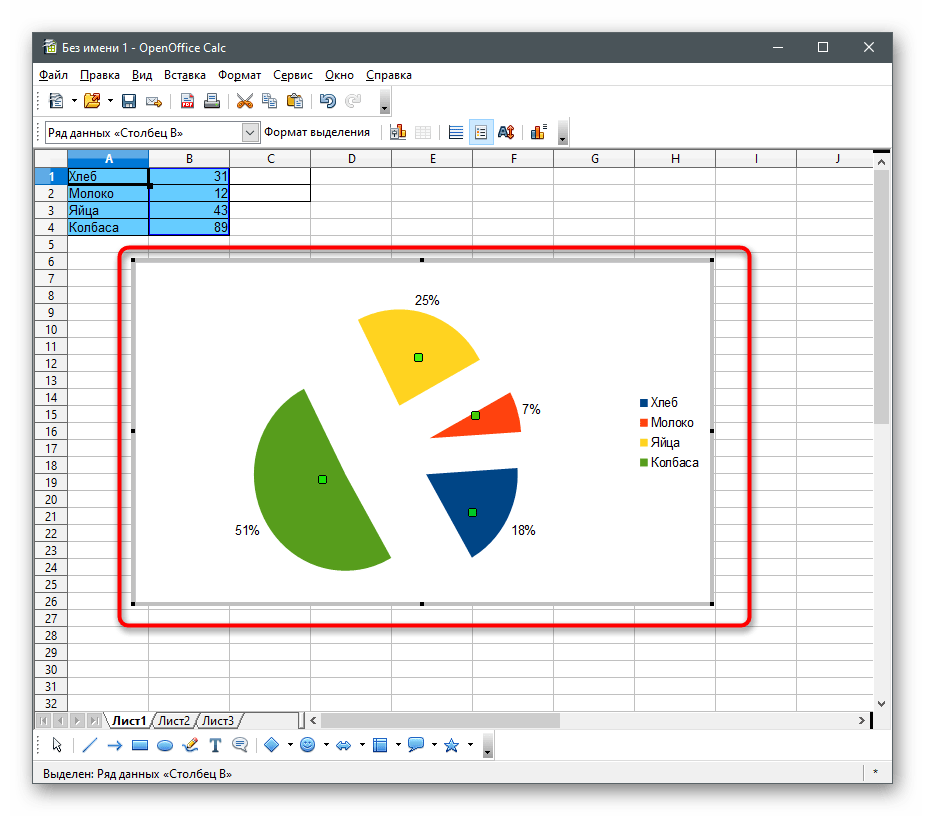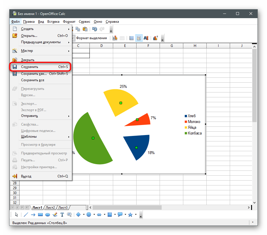 Если приведенный выше вариант вас не устраивает из-за платного распространения, рекомендуем обратить внимание на бесплатный аналог под названием Calc от OpenOffice. Это компонент пакета офисных программ, который предназначен для работы с электронными таблицами и обладает всеми нужными функциями, полезными и при создании круговой диаграммы