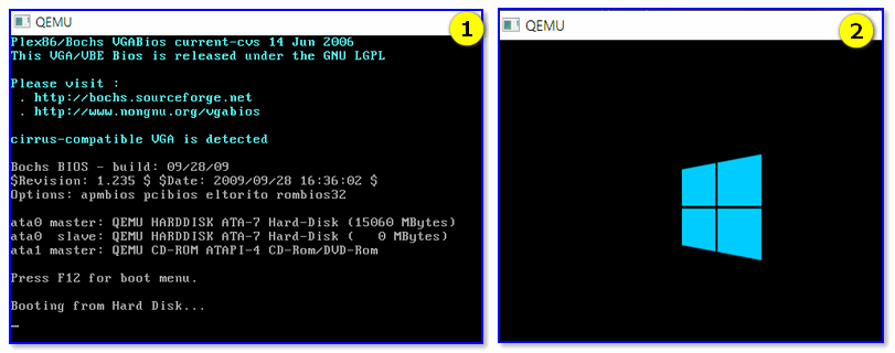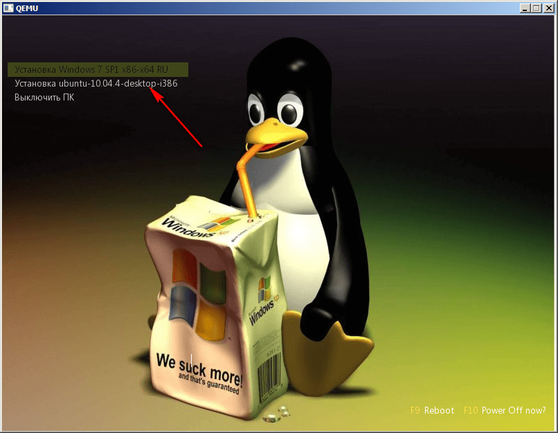 Далее, как и в предыдущем случае, запустится окошко среды QEMU с содержимым тестируемого носителя.